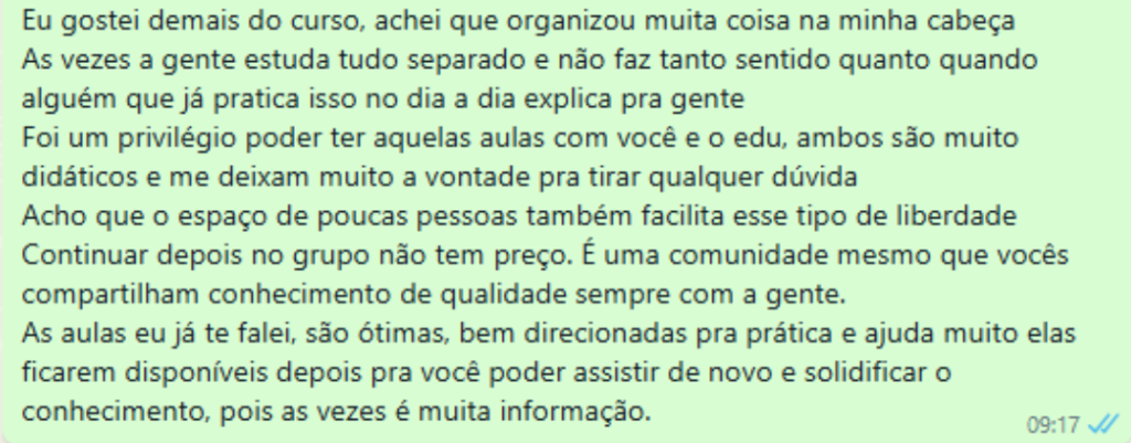 Conexões com outros profissionais da área, incluindo especialistas renomados em ESD